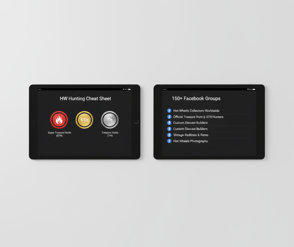 🎁 Hot Wheels Hunting Cheat Sheet – Quick reference visual guide for instantly identifying models like STH, TH, and Premium cars during retail hunting.